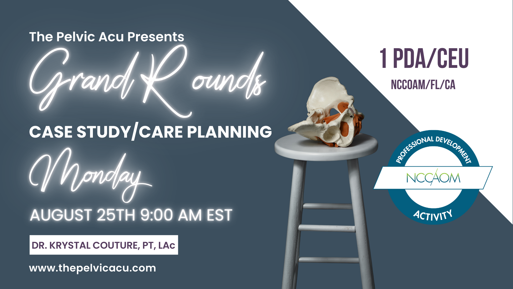 On Monday, August 25th at 9:00 AM (EST), The Pelvic Acu will host a Pelvic Care Case Study & Care Planning Grand Rounds Webinar. This live session offers a unique opportunity to learn, collaborate, and refine your clinical approach to pelvic health conditions.