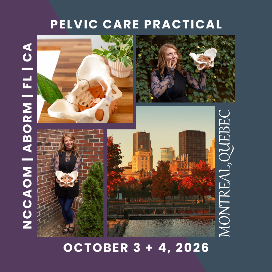 Pelvic Care for Acupuncturists is a 2 Day Live, in person, practical, hands on experience for acupuncturists who wish to bring pelvic care into their practice (20 PDAs/CEUs). We are NCCAOM, FL, CA + ABORM approved.